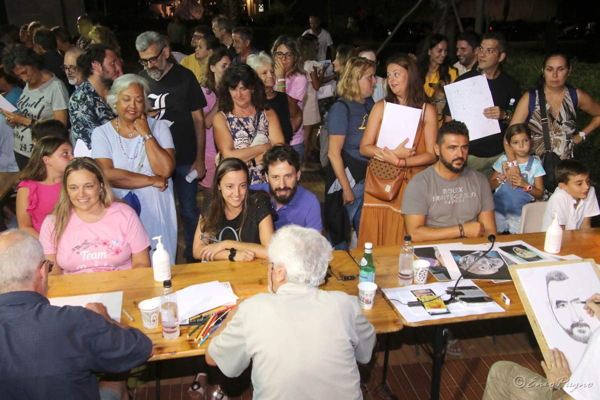 Disegnare nelle fiere è sempre un’esperienza emozionante e interessante – ha risposto - Ma nei comics classici c’è una ripetitività fisiologica, dettata dalle inevitabili tempistiche di questo tipo di eventi. Volevo fare un’esperienza nuova, misurarmi con un modo di disegnare diverso e più diretto. L’esperienza ha superato ogni mia più rosea aspettativa. L’ambiente è molto sereno e gioviale. Mentre si disegna, si ride, si scherza, si inventano battute. Il pubblico, che nei comics classici è composto perlopiù da collezionisti, qui è meno esperto, guarda al disegno con più curiosità, lo vede nascere con un genuino moto di meraviglia. Abbiamo di fronte occhi di tutte le età che seguono con stupore la corsa della matita sopra il foglio. Per noi disegnatori è un po’ come recuperare il senso primario del nostro lavoro, ovvero il piacere di disegnare e condividere ciò che facciamo con altre persone. Insomma, “Spotorno Comics” è un evento che fa star bene. Se poi a tutto ciò aggiungi il fatto che l’evento si svolge in una location meravigliosa e mi dà la possibilità di conoscere vignettisti, caricaturisti e umoristi che per anni ho letto e apprezzato sulla Settimana Enigmistica e su altre riviste, puoi ben capire il motivo per cui ho confermato la mia presenza anche quest’anno.