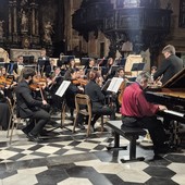 Ancora un successo per i concerto della Stagione musicale comunale, con la basilica di San Vittore sempre gremita. Sul palco il pianista De Maria e l’Orchestra dell’Accademia Teatro alla Scala diretta da Pietro Mianiti
