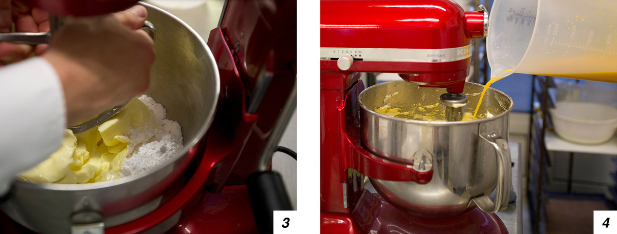 Eccoci: man mano che l’impasto monta aggiungiamo “a filo” uova, panna e purea di passion fruit. L’ultimissimo passaggio è amalgamare con la farina e il lievito chimico precedentemente setacciati.