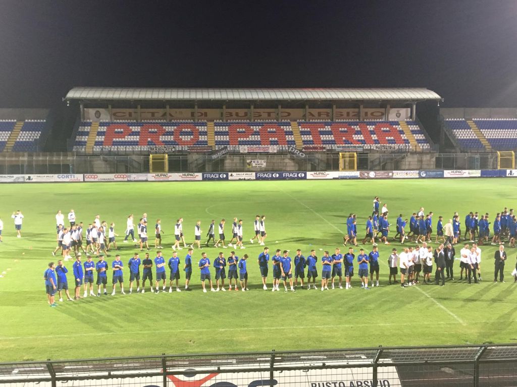 Non ci sono le stelle questa sera per la Pro Patria, ma una luna che poi sonnecchia dentro le nuvole allo Speroni. È una presentazione, quella della prima squadra e di tutti i giovani poi, che attira molti. E mai abbastanza, borbotta il pubblico bustocco.