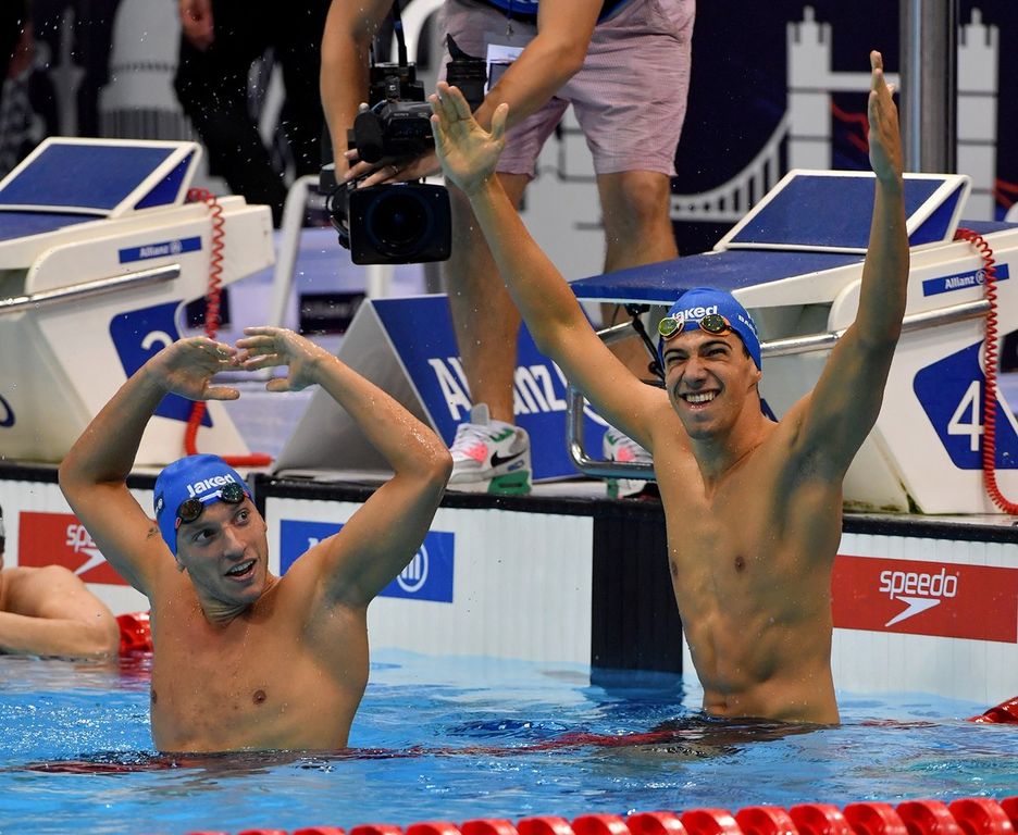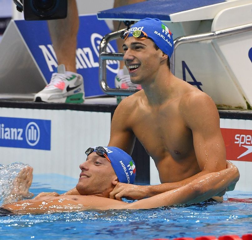 Amici e compagni di squadra nella Polha, che dividono ogni giorno le fatiche degli allenamenti e i passaggi in auto. La vittoria più bella, quella di Simone e Federico, che chiude il cerchio di due generazioni dell’Italia del nuoto. Il più medagliato di sempre del nuoto azzurro Federico Morlacchi e la stella nascente Simone Barlaam, il piccolo Phelps, che a Londra in tre gare ha vinto tre titoli mondiali, si sono passati oggi quasi il testimone ideale di due generazioni.