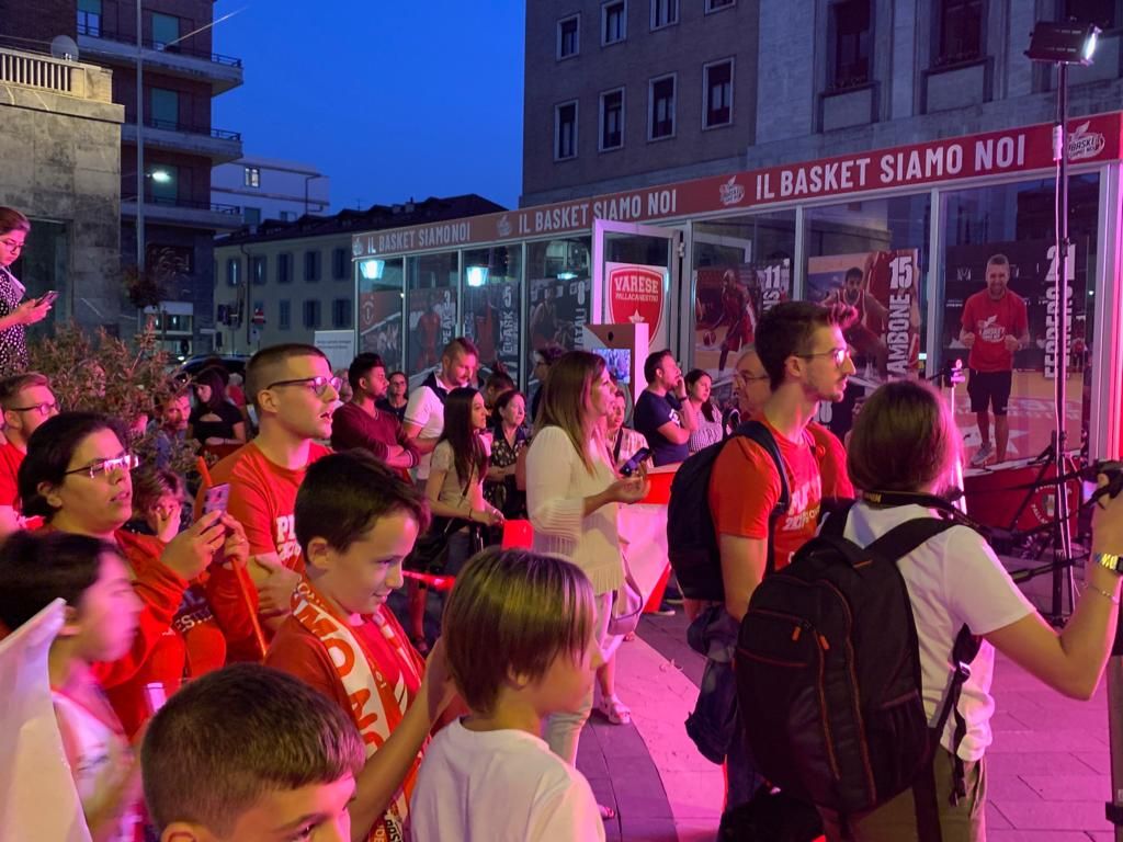 Nel cuore di Varese, nel cuore dei varesini. La Pallacanestro Varese si è presentata nella serata di oggi, giovedì 12 settembre, in piazza Monte Grappa, abbracciata da tanti tifosi che non hanno voluto perdersi l'evento organizzato da "Il Basket Siamo Noi" per salutare il nuovo gruppo che difenderà i colori biancorossi.