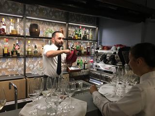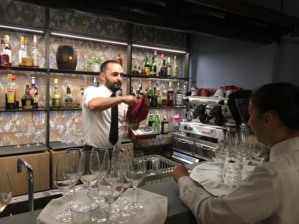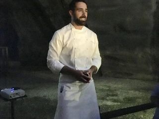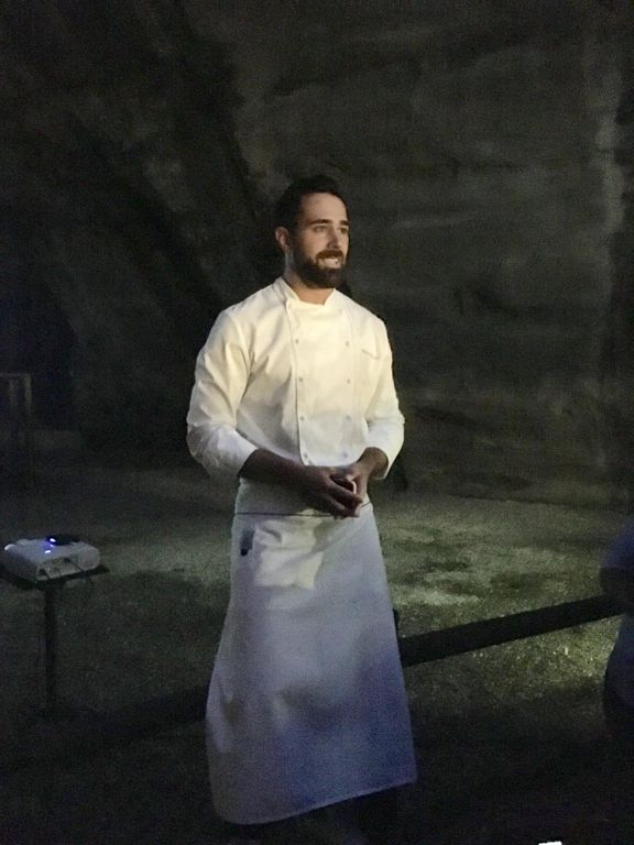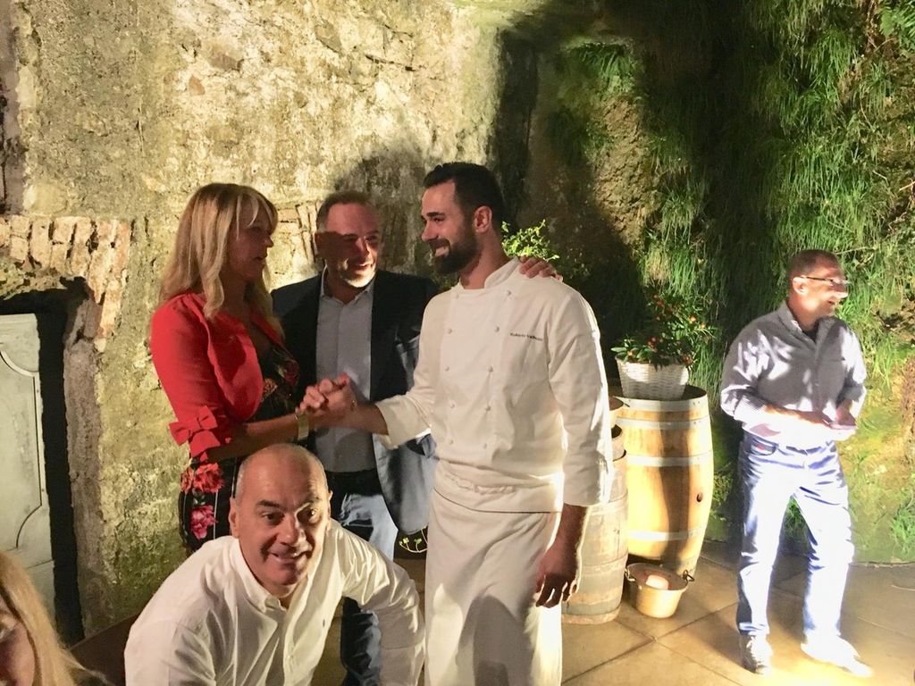 Lo chef, seguitissimo dalle telecamere, ha parlato davanti alla grotta su cui si affaccia l'interno del locale. Con orgoglio ha mostrato un video sui lavori che negli ultimi mesi hanno migliorato il locale, pur mantenendo tutto il fascino autentico di spazi che affondano le loro radici nel Quattrocento. Spicca in questo contesto la grande cucina a vista: un modo per far vivere in presa diretta al cliente la magia delle preparazioni.