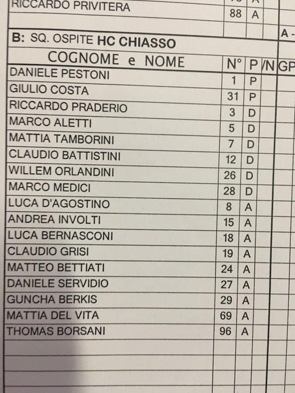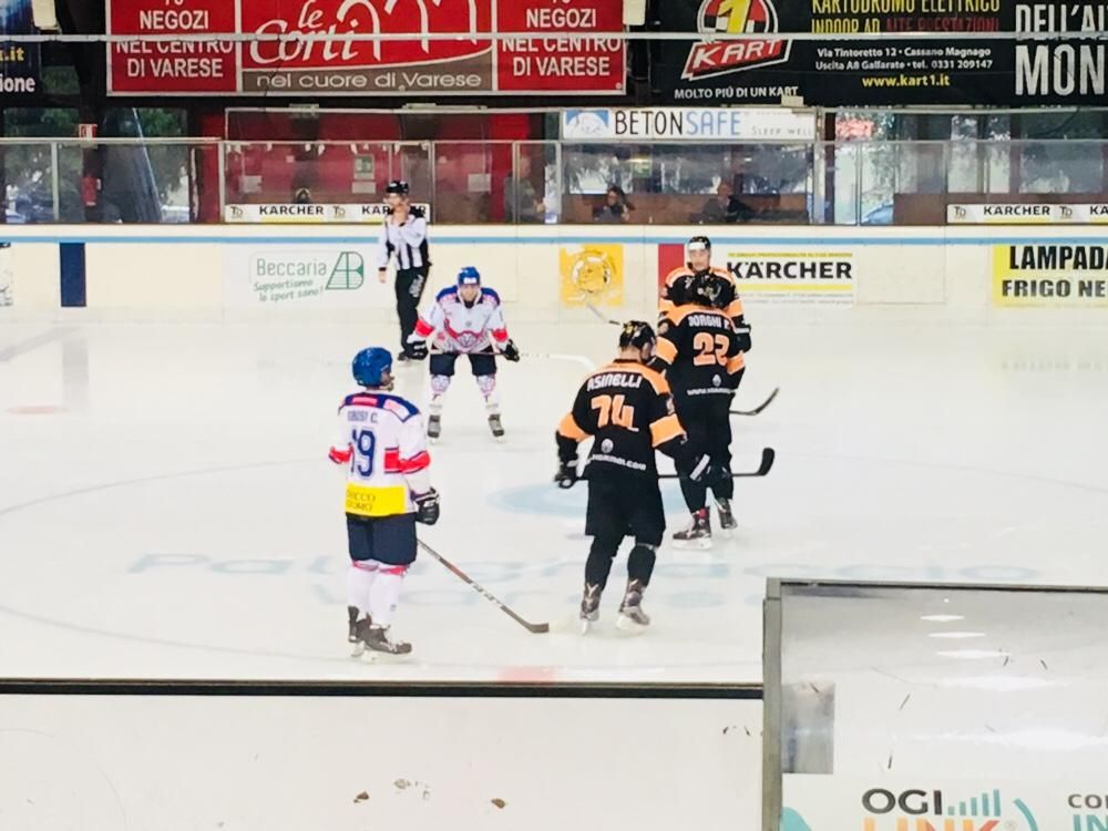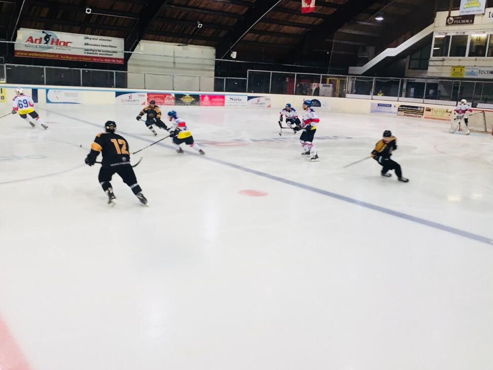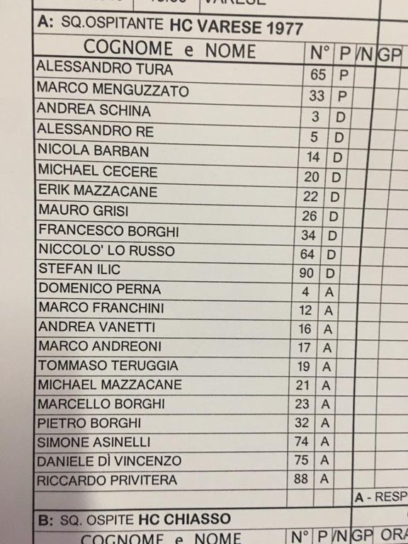 Assenti Odoni e Raimondi (dici poco), Da Rin ha schierato la prima linea d'attacco ex Milano Asinelli-Marcello Borghi-Perna con la coppia difensiva Re-Schina; in seconda Ilic-Francesco Borghi, Vanetti-Franchini-Teruggia; terza con Cecere-Grisi e Privitera-Mazzacane-Pietro Borghi con jolly Barban. Nel terzo periodo in porta ha giocato Menguzzato (ottime alcune parate). Maglie: le solite, magiche e belle ma lo saranno anche di più quelle nuove - con sorpresa - che verranno presentate in settimane, probabilmente venerdì.