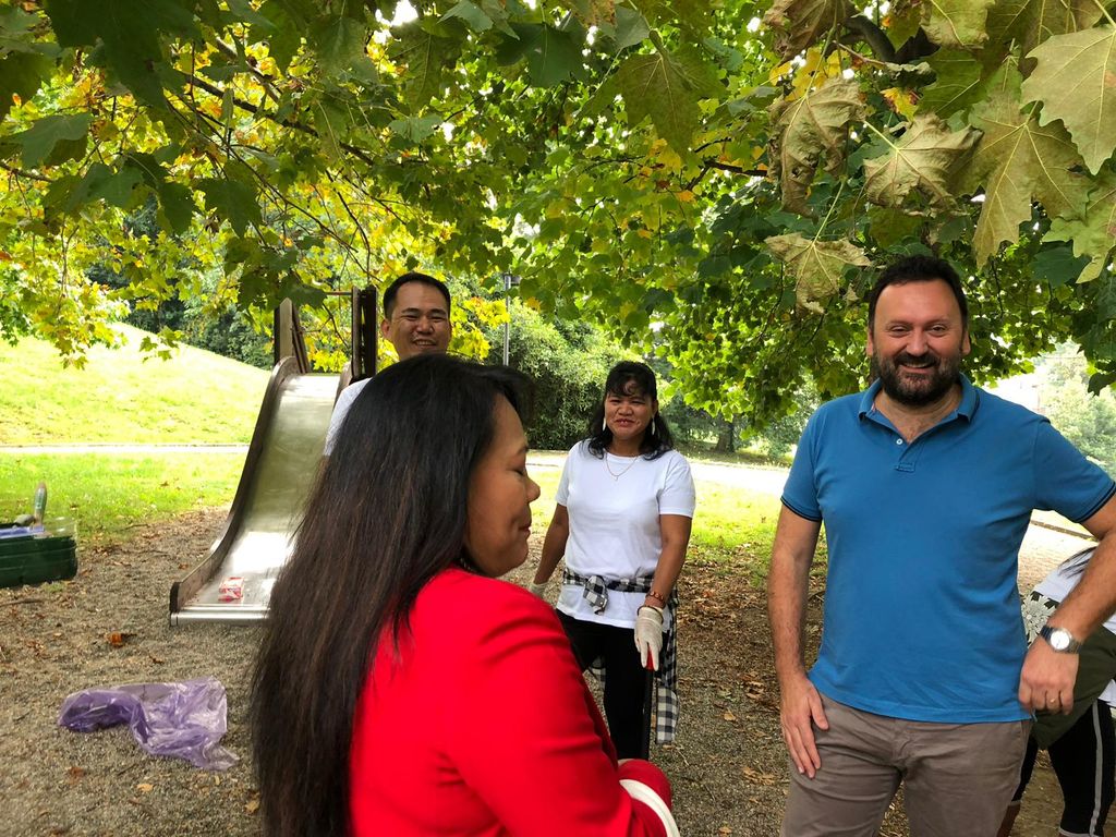 «Una bella giornata di comunità», così la descrive l’assessore all’Ambiente Dino De Simone che nei giorni scorsi era stato contattato dalla comunità filippina che si era resa disponibile per organizzare questa attività. «Un bellissimo modo per condividere i beni comuni e stringere patti di collaborazione. Ringrazio la comunità filippina per aver deciso di regalare alla città questa giornata di volontariato prendendosi cura dei nostri parchi più belli».