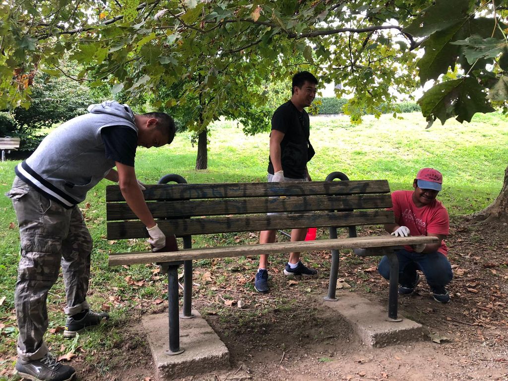 I lavori sono iniziati carteggiando le panchine dalle scritte e dalla vecchia pittura per poi passare alle mani della nuova vernice verde. Altre persone invece si sono occupate di recuperare bottiglie e sacchetti abbandonati. Insomma, una vera giornata ecologica di volontariato quella che oggi i filippini hanno voluto regalare alla città con il loro impegno.
