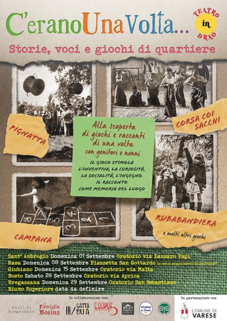 Terza tappa per "Storie, voci e giochi di quartiere", la rassegna ideata da Clarissa Pari con lo staff dell'associazione di promozione sociale Drao e patrocinata dal Comune di Varese.
