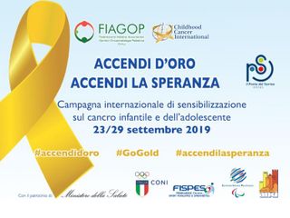 Da lunedì 23 a domenica 29 settembre la rete di associazioni di "Fiagop", della quale fa parte anche Il Ponte del Sorriso darà vita sul territorio nazionale alla seconda edizione della campagna di sensibilizzazione pubblica "Accendi d’Oro, Accendi la Speranza’"a sostegno dei bambini e degli adolescenti che hanno contratto tumori e leucemie. L’iniziativa si colloca nell’ambito del Settembre d’Oro mondiale dell’oncologia pediatrica a cura di ‘Childhood Cancer International’, un network di associazioni di genitori presente nei 5 continenti, attive sia dentro che fuori dai centri di cura.