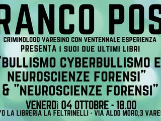 Bullismo e scienza, se ne parla venerdì alle ore 18 alla Feltrinelli di Varese. A presentare i suoi ultimi libri usciti nelle scorse settimane e a rispondere alle domande sull'argomento sarà il criminologo varesino Franco Posa, esperto di neruroscienza e volto noto anche di trasmissioni televisive. Si tratta di "Bullismo cyberbullismo e neuroscienze forensi" e "Neuroscienze forensi" editi da EBS Print e già in libreria o scaricabili come ebook.