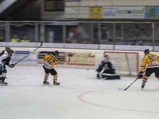Primo periodo subito bellissimo dentro e fuori dal ghiaccio, con la gente che ha continuato a entrare superando quota 700: goccia dopo goccia, Varese sta tornando a riempire il suo mare ghiacciato di via Albani. Un boato assordante accompagna l'1-0, magnifico, di Andrea Vanetti che arriva in corsa e spedisce dentro l'assist di Perna. Da stropicciarsi gli occhi la velocità con cui aggrediscono il match i gialloneri, caricati a molla da Massimo Da Rin e dalla curva dove campeggia uno striscione semplice e forte: "Nel nome di Varese".