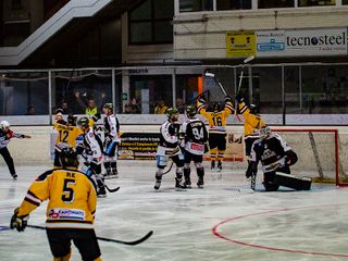 Si sono sentiti perfino i cori contro il Bolzano, s'è rivista la gente sulle panche in legno dietro la balaustra sotto il tabellone, il popolo giallonero in tribuna (presente anche il sindaco Galimberti con figlio) e una curva per cui non esistono aggettivi. Ha cantato, trascinato, ballato per 62 minuti e 36 secondi, ricevendo la squadra e la corsa finale con il salto sotto la balaustra ormai must del portierone Alessandro Tura.