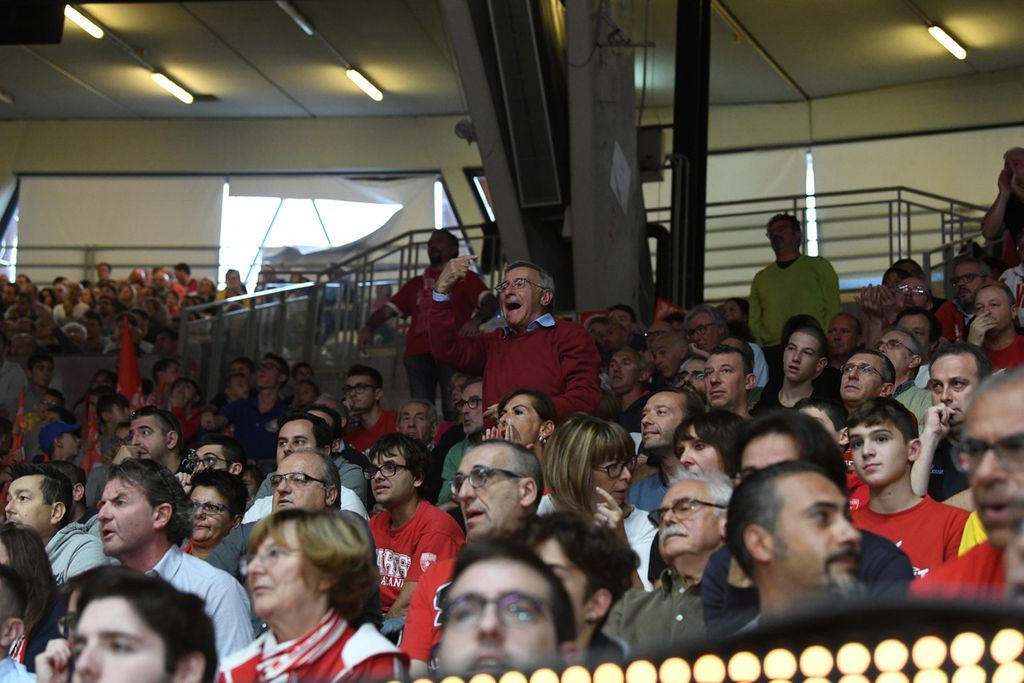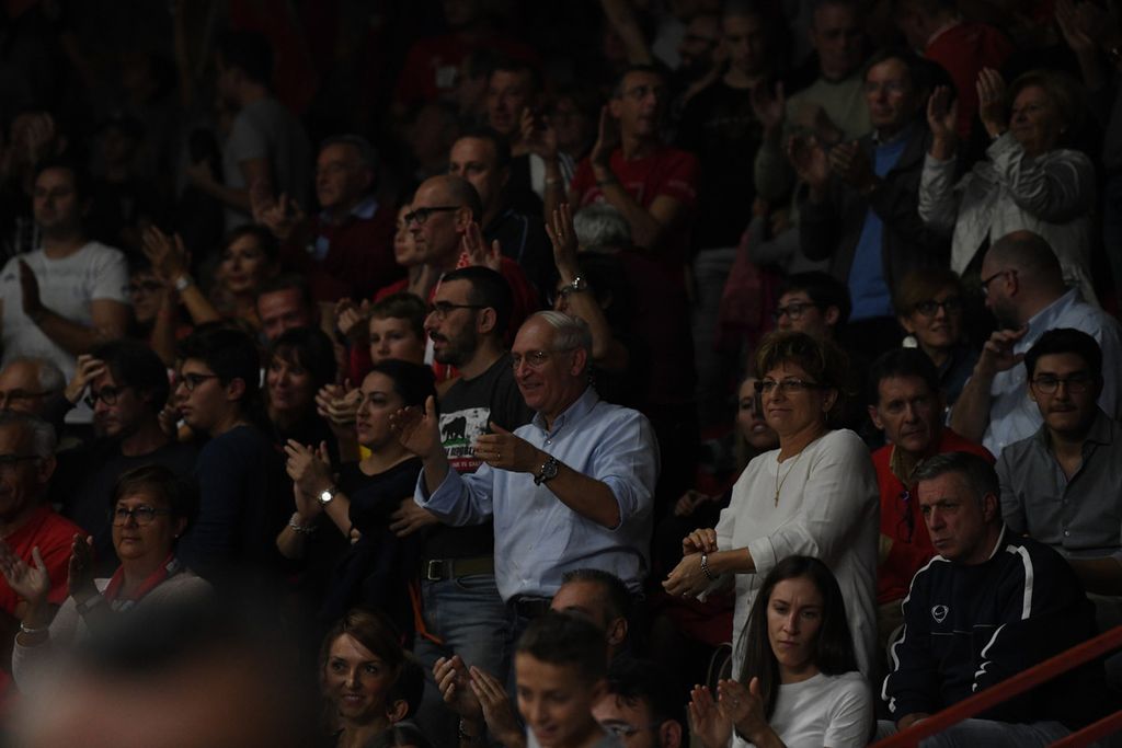 Negli scatti di Fabio Averna i volti e la passione dei quattromila spettatori dell'Enerxenia Arena che hanno trascinato l'Openjobmetis alla splendida vittoria sulla Fortitudo