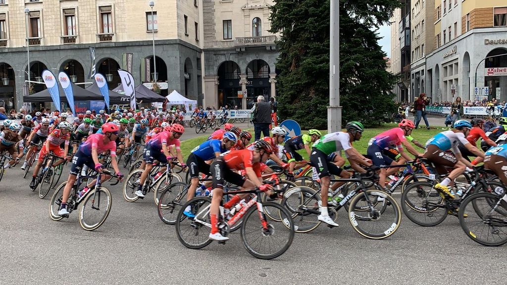 Ecco il secondo passaggio nel cuore di Varese. Siamo circa a metà gara e il divario tra fuggitivi e gruppo è sceso intorno al minuto.
