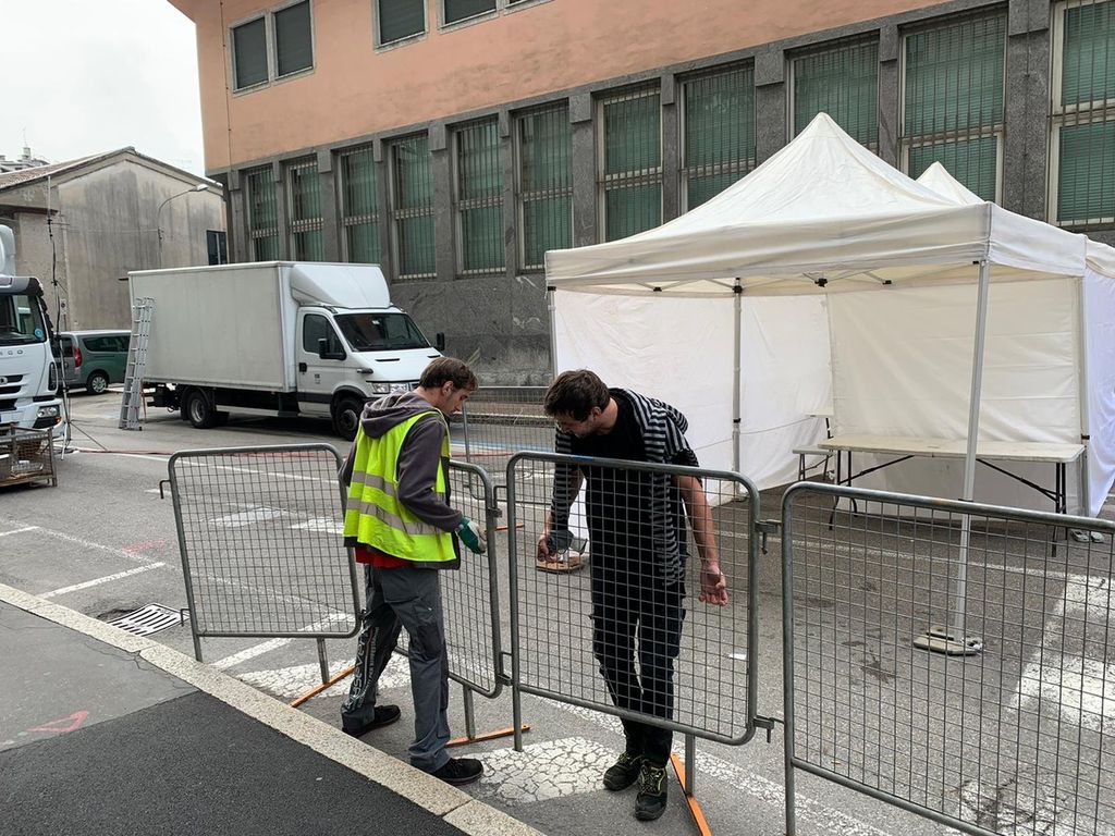 In via Sacco abbiamo incontrato i professori del Liceo Sportivo "Marco Pantani-Olga Fiorini" di Busto, Marco Caccianiga e Stefano Paglia, che hanno accompagnato i loro ragazzi per una giornata speciale di lavoro ed esperienza sul campo: