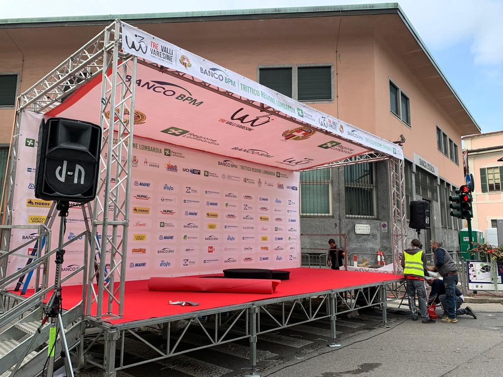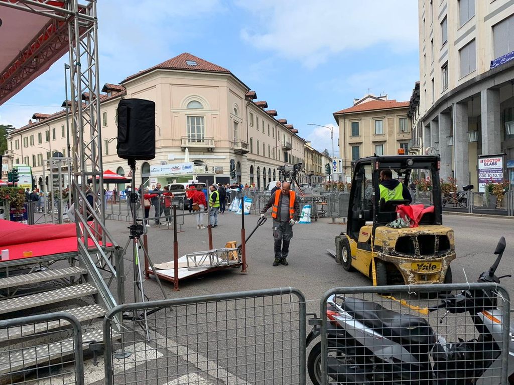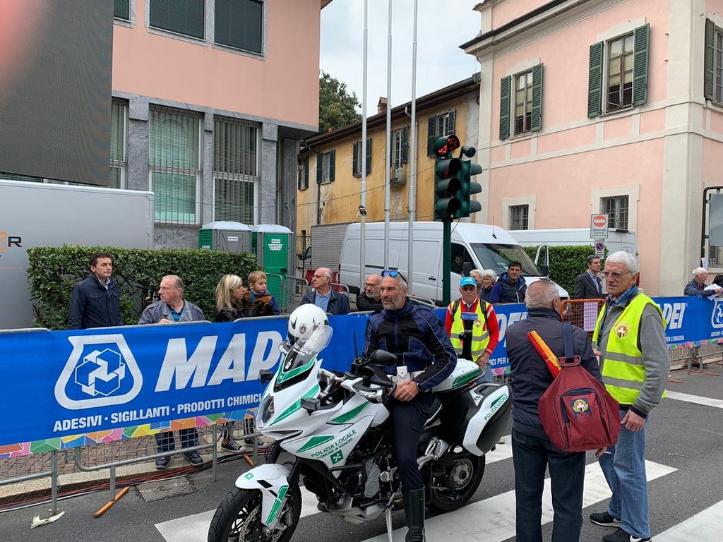 I corridori sono partiti un'ora fa da Saronno, hanno costeggiato il lago di Varese e si preparano a salire verso Orino. Ci sono sei fuggitivi, poi il gruppo compatto. In centro città, dove ormai è tutto pronto, sono già passati dei ciclisti: sono i volontari che pedalano per raccogliere fondi per l'autismo e le disabilità.