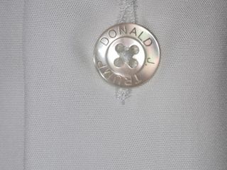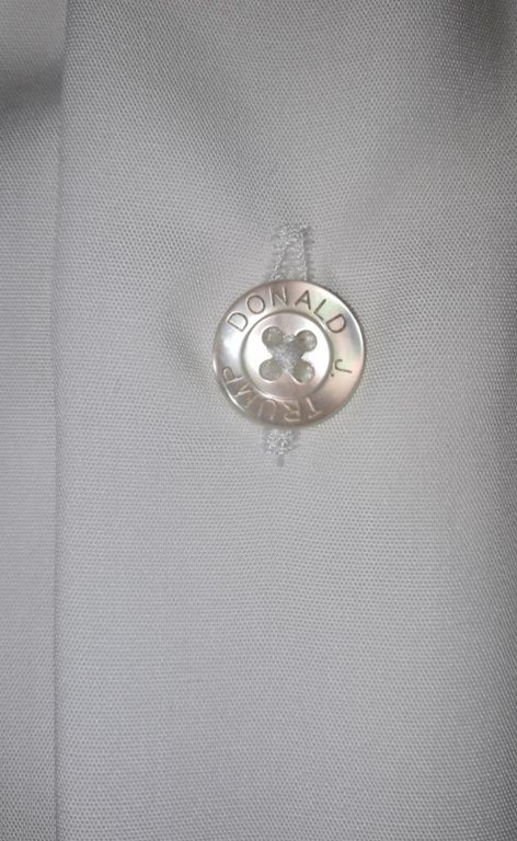 La camicia di Trump è in cotone anallergico, no stiro, e soprattutto è vegana, ovvero non ha alcun colorante o sostanza animale. Il colore scelto è un bianco passepartout con collo americano (botton down) e bottoni in madre perla personalizzati: all'interno c’è scritto Donald J. Trump. I polsi sono modello gemelli e le iniziali sono nel colore preferito dal presidente, il blu.