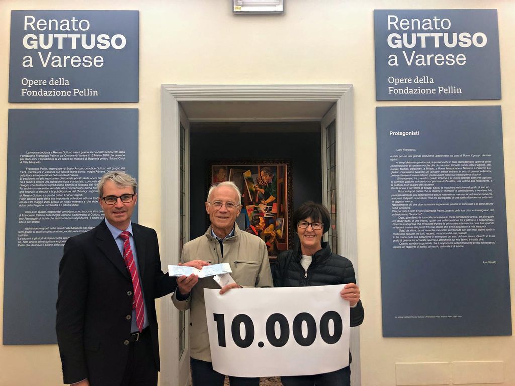 In 10mila da “Renato Guttuso a Varese”. Un numero di ingressi da record, perché nessuna mostra aveva mai raggiunto a Villa Mirabello così tanti visitatori. Nel pomeriggio di oggi il sindaco Davide Galimberti ha premiato con un abbonamento alla Stagione teatrale comunale 2019/2020 il fortunato visitatore. O, meglio, la fortunata coppia: ad aggiudicarsi il biglietto numero diecimila sono stati infatti Anna Maria ed Elio, arrivati da Luvinate proprio per visitare le opere del maestro di Bagheria.