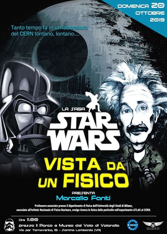 Marcello Fanti, Professore associato presso il dipartimento dell’Università degli Studi di Milano, associato all’Istituto Nazionale di Fisica Nucleare, ricercatore in Fisica delle particelle nell’esperimento Atlas al Cern, spiegherà al pubblico di Volandia se è possibile che una galassia molto lontana possa ospitare così tante forme di vita aliene: come è possibile controllare un impero galattico che si estende per centinaia di migliaia di anni-luce; cosa sono i mitici salti nell’iperspazio che il Millennium Falcon pilotato da Han Solo compie percorrendo la rotta di Kessel in meno di 12 parsec.