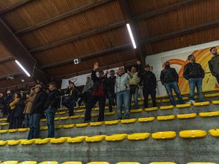 Spettacolo di pubblico, con i ragazzi della Curva tutti uniti e numerosissimi per il derby: entrano cantando a squarciagola, espongono due mega striscioni (Ragazzi della Nord e Brigate Giallonere, oltre a uno che li accompagna sempre dedicato alla memoria di Dede) e sbandierano senza fermarsi un secondo.