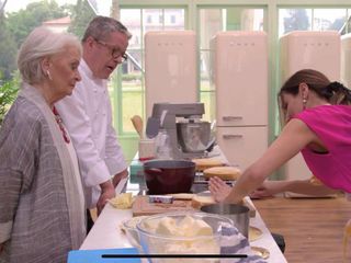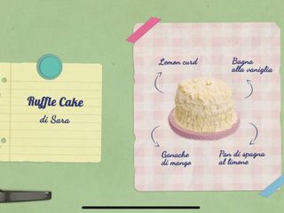 Pronti, via e si parte con la prova creativa: i concorrenti dovranno realizzare una ruffle cake, una torta arricciata in basso e liscia in cima dal grande effetto scenografico. La nostra Sara ha un piccolo incidente, che affronta con la solita tranquillità: «Mi è caduta una delle basi… Fa niente, la mia torta verrà un po’ più piccola!». Knam e Clelia fanno visita a Nonna Papera, che svela di amare il cake design e anche di essersi spesso ispirata al maestro Ardovino. La sua ruffle cake è un pan di spagna al limone con bagna alla vaniglia, lemon curd e ganache di mango.