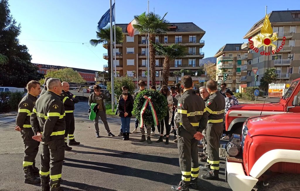 Un gruppo di alunni del Centro di Formazione Professionale di Luino, insieme agli uomini del distaccamento, ha svolto un minuto di silenzio e posto una corona di alloro davanti alla caserma.