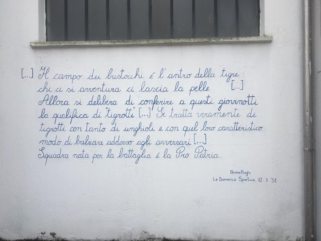 Foto e copertine si rincorrono, ma nessuno riesce a sottrarsi al potere della scritta fuori, quella che dice tutto. È la famosa frase con cui Bruno Roghi, con “La Domenica sportiva” 88 anni fa, sancì la fama di tigrotti per i giocatori della Pro Patria. Più la leggi, più ti vengono i brividi.