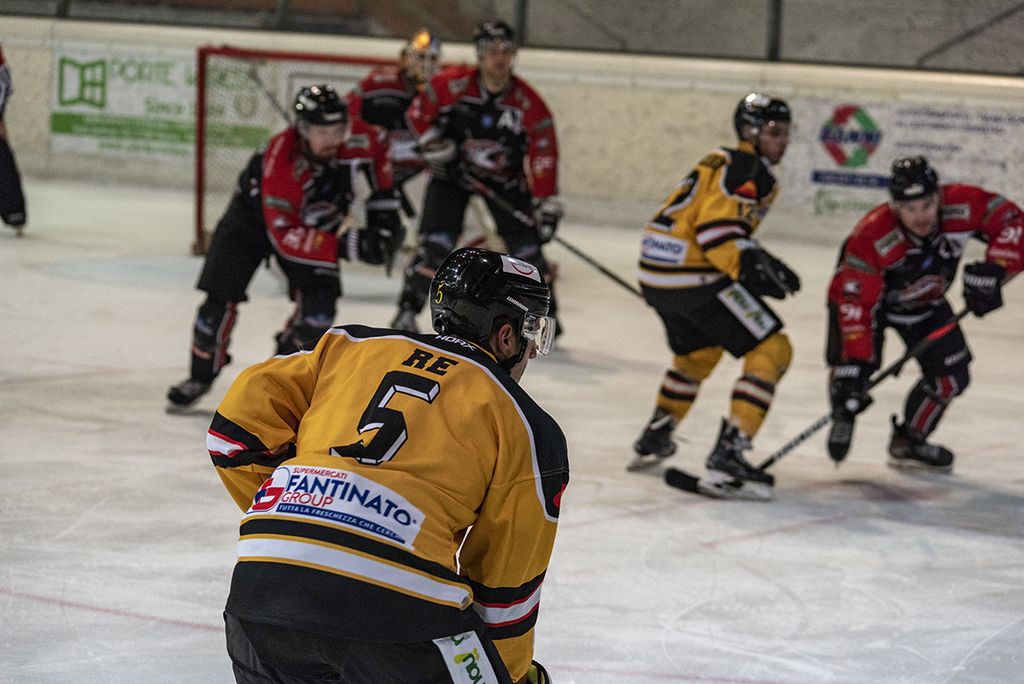 Hanno un gusto speciale i gol di Vanetti (3-1: perché "sniper" mette dentro il disco assistito dai "suoi" Perna e Franchini) e il 4-2 di Schina perché esalta le sue potenzialità immense, anche offensive, ed è voluto in ogni modo: inserimento, tiro, ribattuta e poi, via, un fulmine sulla gabbia.