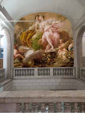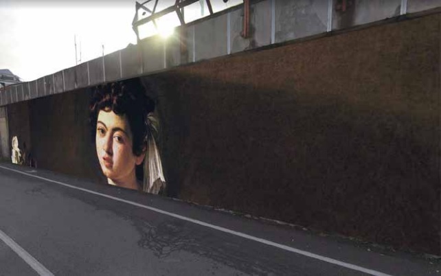 Sulla scala principale del Palazzo di Giustizia, infatti, tra qualche giorno si potrà ammirare la sua rivisitazione con bombolette spray de “Allegoria di Pace e Giustizia” di Corrado Giaquinto.
