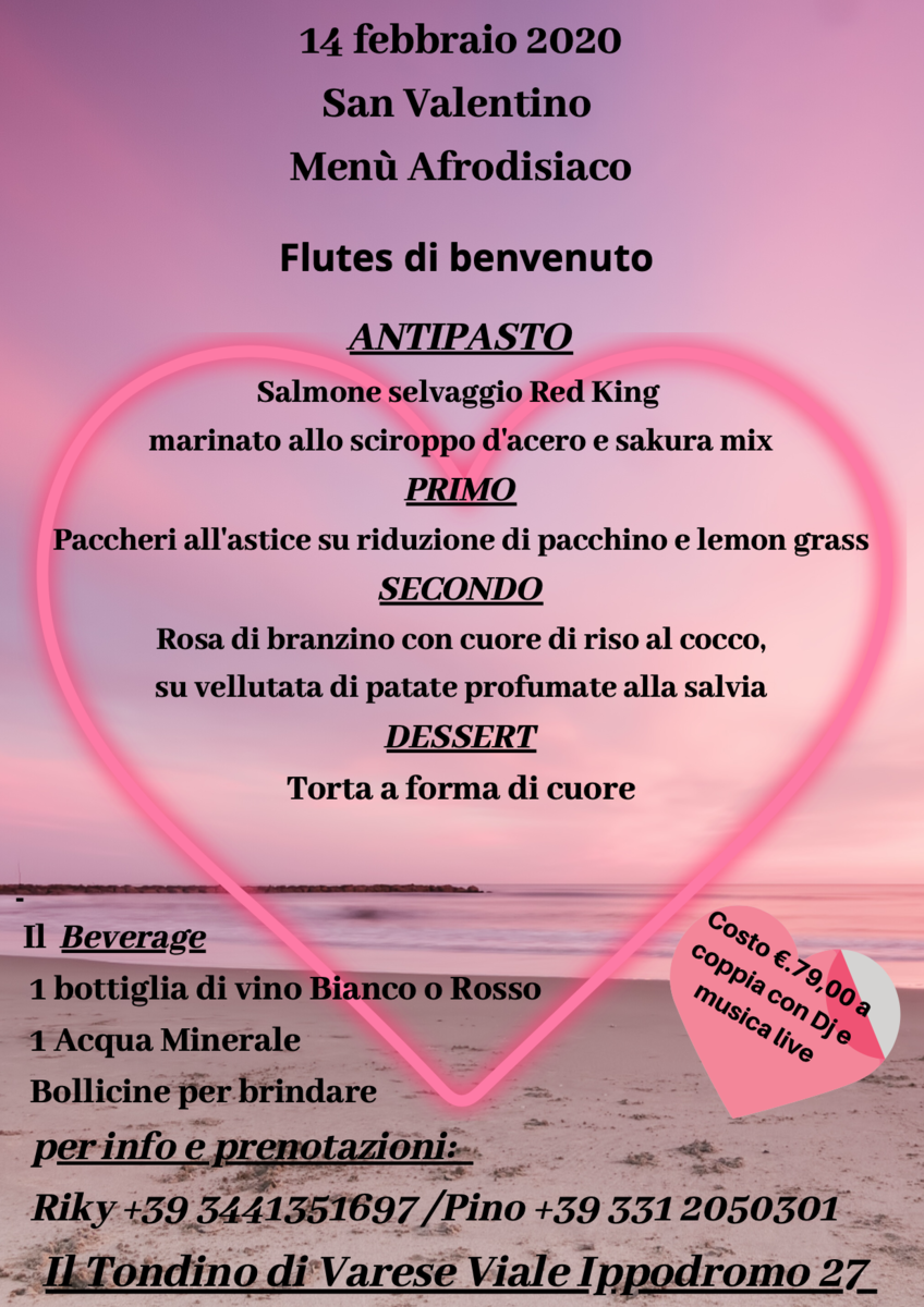 Un flutes di bollicine per il primo brindisi, una cena afrodisiaca da gustarsi occhi negli occhi, la musica del deejay per scatenarsi e divertirsi insieme: il San Valentino del ristorante Al Tondino promette una serata dolce e coinvolgente, da condividere con la tua dolce metà. Per celebrare l’amore.