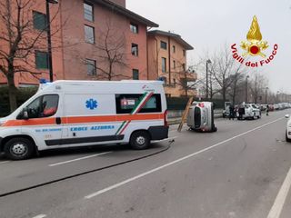 Perde il controllo dell'auto e, dopo aver urtato un veicolo in sosta, si ribalta in mezzo alla strada. L'incidente è successo nella mattinata di oggi, lunedì 17 febbraio, intorno alle 8 in via Manzoni a Caronno Pertusella.
