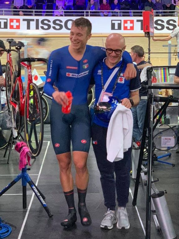 Filippo Ganna è un fenomeno e lo spirito che regna nella nostra nazionale è unico. Ha appena battuto il record del mondo dell’inseguimento individuale percorrendo 4000 metri in 4.01.934. Questa sera lotterà per la medaglia d’oro intanto, sui rulli, si confronta con il nostro CT Marco Villa e i suoi compagni di nazionale Lamon, Scartezzini e Consonni. Sono anni che Marco Villa lavora con questi ragazzi e questi sono i risultati. E non è finita perché Jonathan Milan, friulano di 19 anni, è riuscito ad entrare nella finale per il terzo e quarto posto. A questa sera.