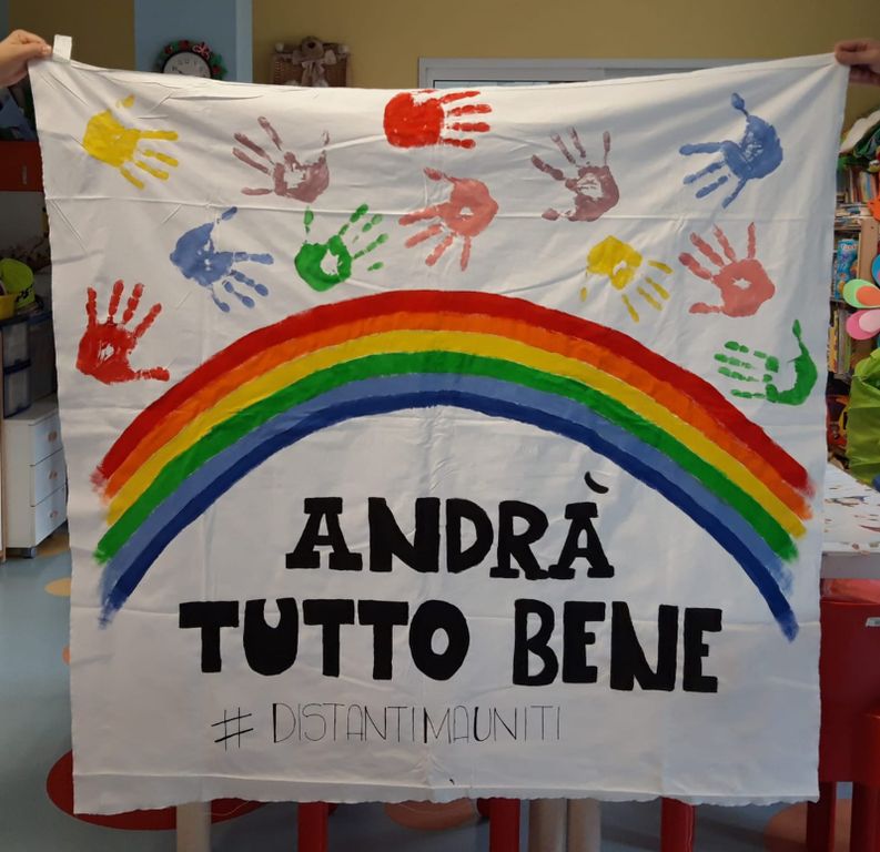Qualche giorno fa qualcuno su Facebook ha lanciato una bella iniziativa, chiedendo ad una famiglia di disegnare un arcobaleno su un cartellone o un lenzuolo con la scritta “Andrà tutto bene” per poi appenderlo su finestre, balconi o terrazze.