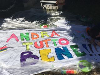 Sono bastati dei colori a tempera da mischiare con l'acqua e un lenzuolo per pitturare la scritta "Andrà tutto bene" con tre punti esclamativi e tante manine: un gesto semplice e spontaneo, ancora più bello perché arriva dalla purezza e dall'incanto dei bambini. Che ci indicano la strada de seguire: viviamo questo momento dando il meglio che possiamo, per noi ma soprattutto per gli altri.