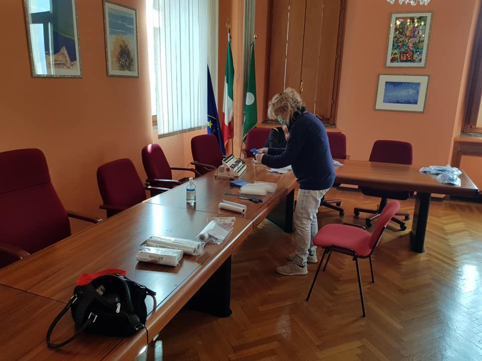 Prosegue il confezionamento, in sala consiliare, e la distribuzione di mascherine effettuati dal Comune di Comerio con il fondamentale apporto di volontari sia comunali che della parrocchia, oltre che della pro loco.
