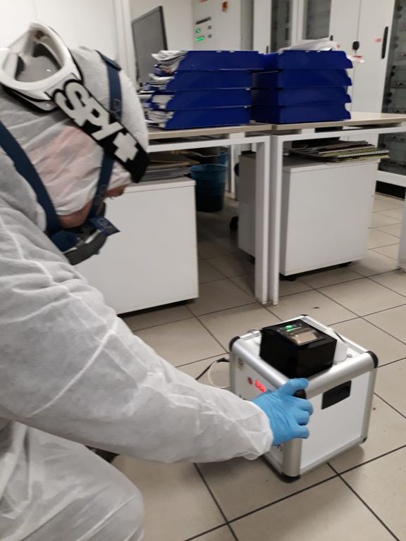 Oggi i tecnici dell’impresa di Galliate hanno lavorato per sanificare gli ambienti interni della sede di Saronno delle Assicurazioni Generali.