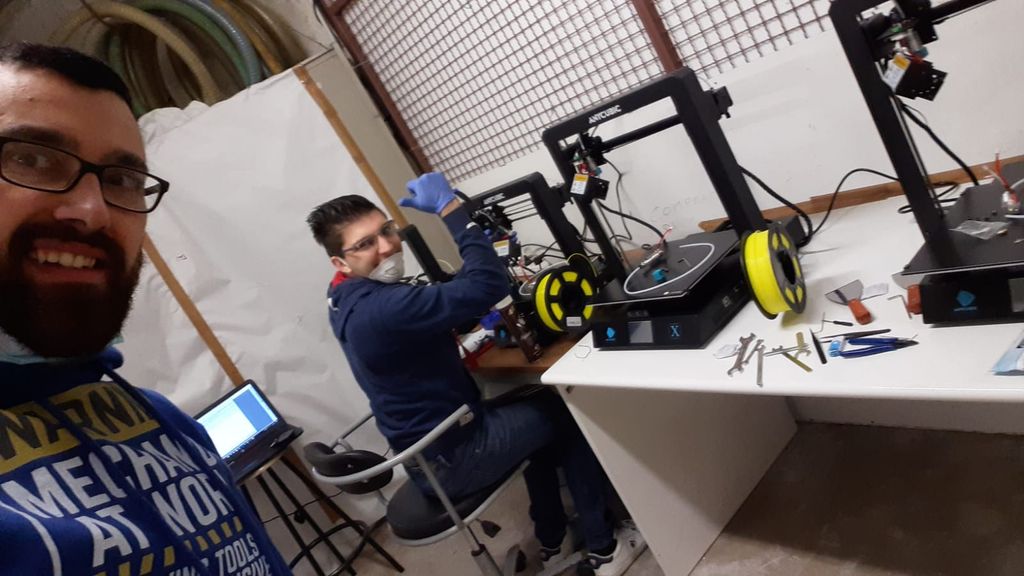 Carlo Blumer, Marco Pirotta,  Bruno  Lascaro e  Simon Silver sono amici che a tempo perso realizzano piccole componenti con le stampanti 3D e le rivendono online. Un’attività in cui hanno investito più per piacere personale, perché appassionati della moderna tecnologia, ma che non è decollata.  «Eravamo partiti con degli obiettivi ma non ci siamo mai impegnati veramente per raggiungerli, perché presi da altro – raccontano –  Ci siamo approcciati alla stampa 3D più che altro da hobbisti e quando è scoppiata l’epidemia ci siamo imbattuti in un video che ci ha rivoluzionato la vita».