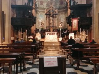 Sono riprese infine anche le cerimonie religiose e le campane hanno richiamato i fedeli alla prima messa celebrata alle 8.30 nella Basilica di San Vittore. Anche in chiesa valgono le regole del distanziamento, con i posti assegnati sulle panche e il disinfettante nell'acquasantiera.