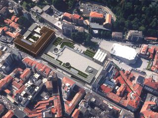 - Lato sinistro della direttrice: ultimo lembo di piazza Repubblica, nella rientranza mantenibile tra l’ingresso del parcheggio e l’edificio de Le Corti.