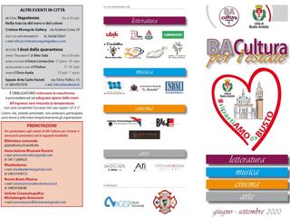 Prosegue a Busto Arsizio la rassegna BA Cultura per l’Estate, il calendario di eventi culturali dal vivo della Città di Busto Arsizio che riporterà in città letteratura, musica, cinema e arte fino al mese di settembre. Tutti gli incontri si svolgeranno all’aperto, in luoghi circoscritti, e la partecipazione sarà consentita esclusivamente su prenotazione.