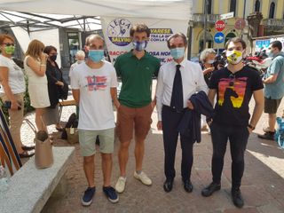 Poi, foto di gruppo al banchetto dove si raccolgono tesseramenti e firme su immigrazione, pace fiscale e stop ai vitalizi insieme ai militanti, al commissario cittadino Cristiano Angioy e ad Alberto Nicora, coordinatore cittadino della Lega Giovani.