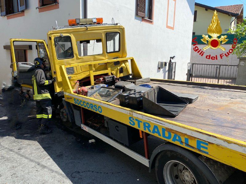 FOTO. Si schianta con il carro attrezzi contro un muro: grave il conducente
