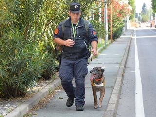 Il pastore malinois dei carabinieri addestrato per riconoscere i bocconi mortali abbandonati in strada contro cani e gatti anche oggi in strada insieme ai militari dell'Arma: «Denunciate alle forze dell'ordine i casi sospetti»