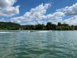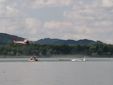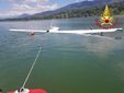 L'aliante in acqua dopo l'impatto (foto scattata un socio della Canottieri Varesi che si trovata sul lago al momento dell'impatto)