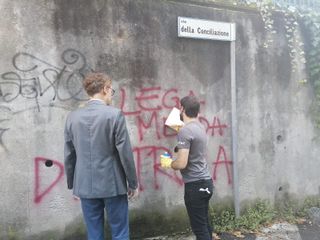Ma le scritte ingiuriose apparse sul muro di via della Conciliazione a Casbeno (leggi qui) sono già state ripulite. Infatti nel pomeriggio i ragazzi della Lega Giovani, insieme allo stesso Angioy Viglio, si sono dati da fare con diluente e spazzole per ripulire da soli le scritte. La frase è comparsa almeno una settimana fa e non poteva restare altro tempo sul muro di un asilo a due passi dalla parrocchia.