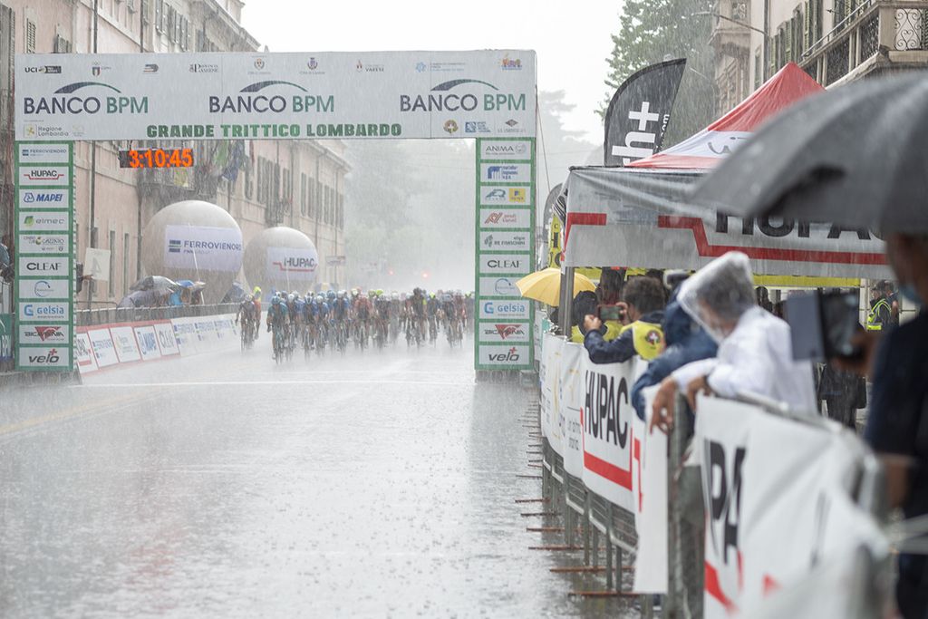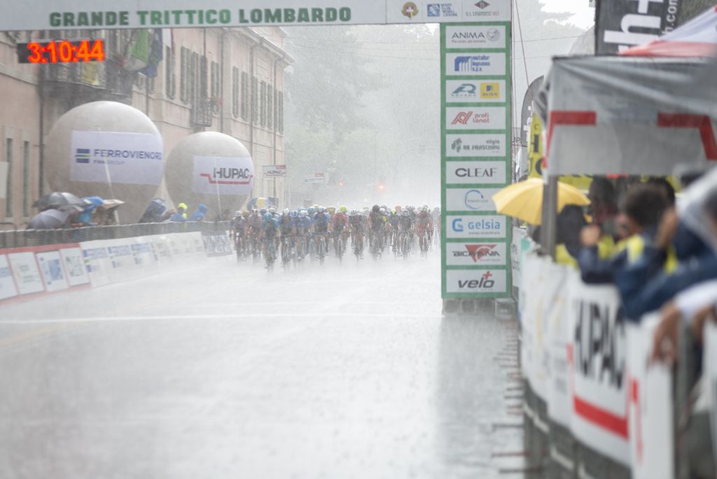 Partono in 146 da Legnano e arrivano sul traguardo di via Sacco a Varese in 52 dopo aver scalato non solo il Piccolo Stelvio o i Ronchi ma un vero muro d'acqua e di vento. Perfino l'aereo della Rai, come ha raccontato Renzo Oldani (leggi e guarda QUI), è stato fermato dalla tempesta di grandine che ne ha rotto un'elica.