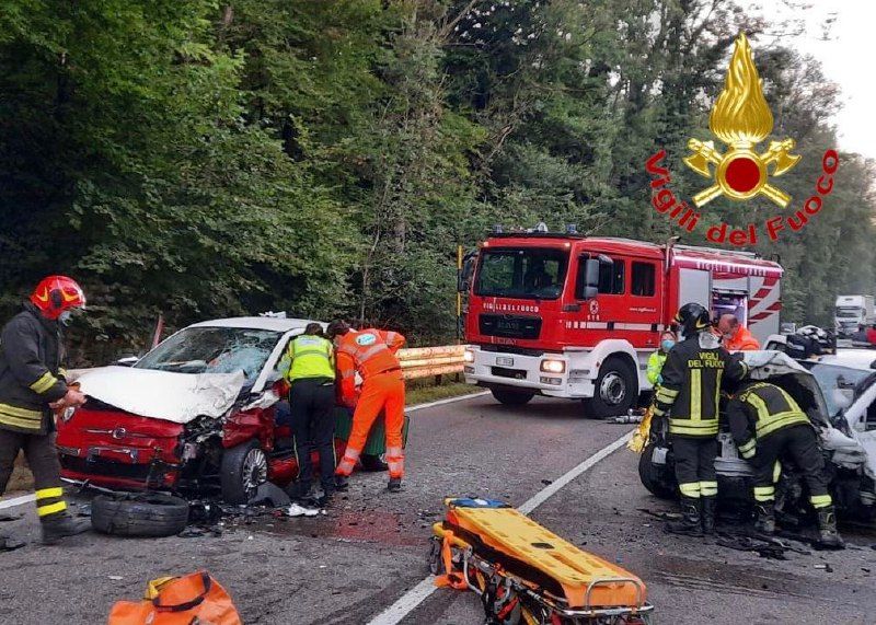 FOTO. Spaventoso frontale sulla statale della Valganna: due feriti gravi e strada bloccata