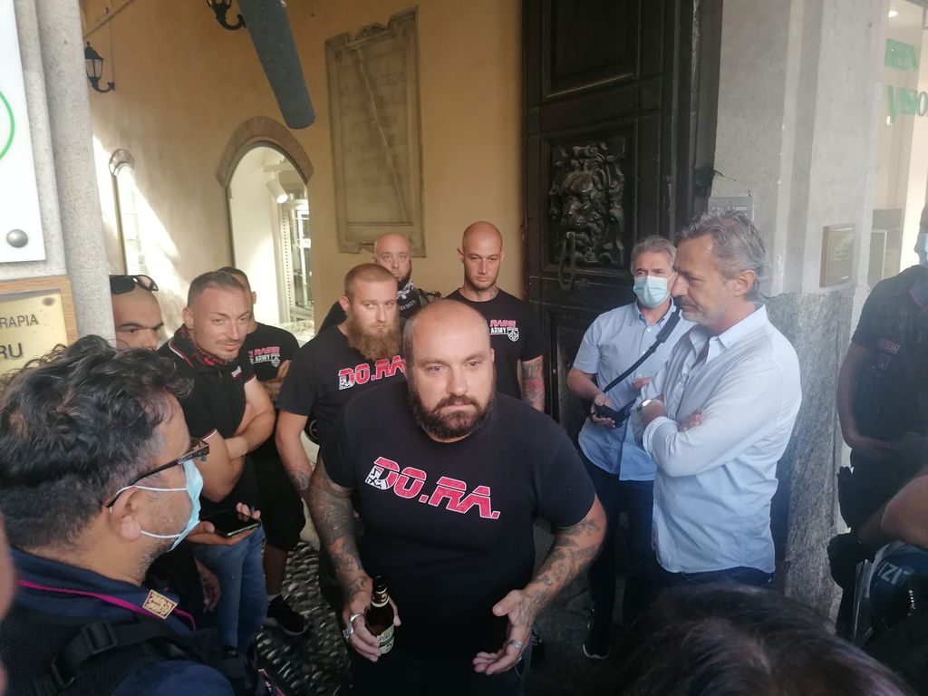 In piazza c'erano anche loro, i Do.Ra. Avrebbero voluto partecipare alla manifestazione «ma evidentemente non siamo in democrazia. L'invito era aperto a tutti, tranne a noi - ha detto il leader del movimento nazionalsocialista, Alessandro Limido, bloccato nel cortile del Broletto dagli agenti di Polizia - Volevamo vedere cosa succede a casa nostra».