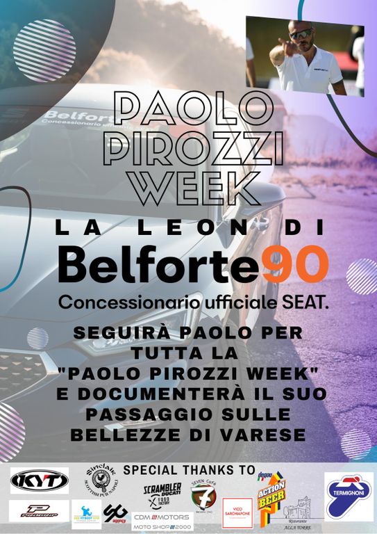 Inoltre da domenica a giovedì una Seat Leon della concessionaria “Belforte90” seguirà il primatista per documentare tutti i suoi passaggi sul nostro territorio. Oltre a questo la stessa Belforte90 ha deciso di permettere un test drive sulla Seat Leon a tutti i partecipanti dell’evento di domenica al Seven Cafè.