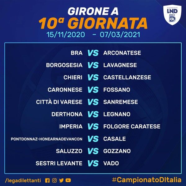 Una data, comunque, storica visto cosa è successo negli ultimi anni al Varese, rinato dalle ceneri della Terza Categoria una stagione fa: i biancorossi esordiranno in serie D domenica prossima, 27 settembre, sul campo ligure di Sestri Levante. Il debutto al Franco Ossola avverrà invece domenica 4 ottobre contro i valdostani neopromossi del Pont Donnaz: la società del presidente Amirante aveva chiesto di poter disputare la prima partita lontano da casa per via dei lavori al campo e allo stadio, ormai in fase di ultimazione, distinti a parte (restano inagibili, come le curve, sempre che si giochi in presenza di pubblico). Le prime due giornate si disputeranno a porte chiuse, salvo ripensamenti o modifiche delle regole.