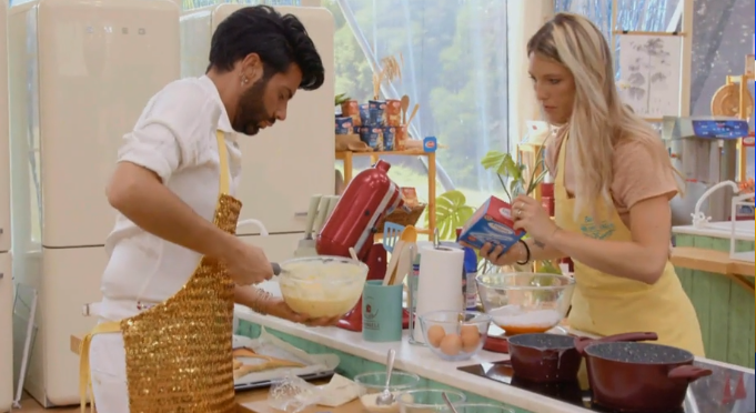 Mentre Federico le promette acconciature e shatush in cambio di consigli, Sara prepara una sponge cake al pistacchio e scorza d’arancia bagnata con lo champagne e decorata con frosting al mascarpone e macaron. Un po’ minimal, secondo Benedetta e il “cake star” Damiano Carrara: Sara dovrebbe osare di più.